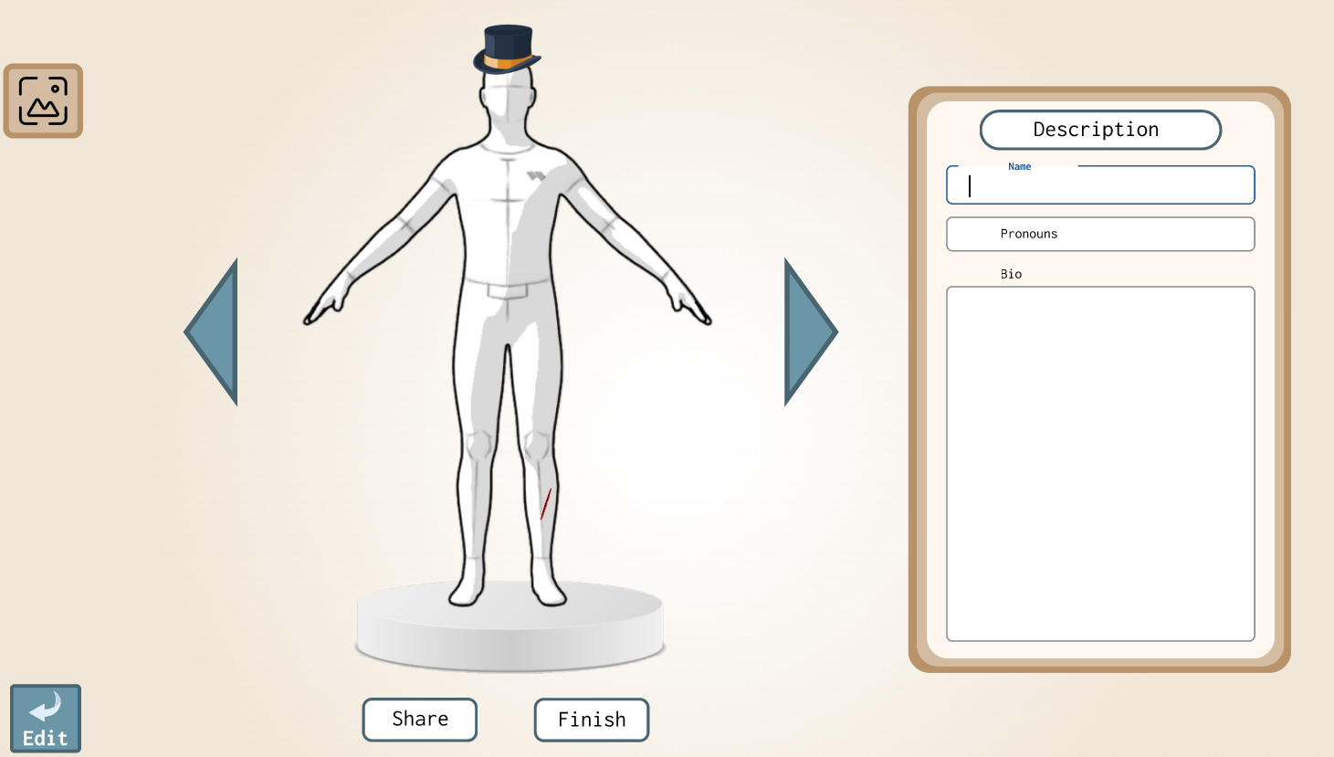 A figma UI/UX project that was about making a Sims-style game which had more of a focus on having diversity options such as injuries, scars and LBGTQ options. It was a made with a team of 3 and I was responsible for the technical back end and general UI design of the project. It was the projects that greatly enhanced user experience and user design skills and my team appreciated the work and effort that I put in to build a solid user interface for players.